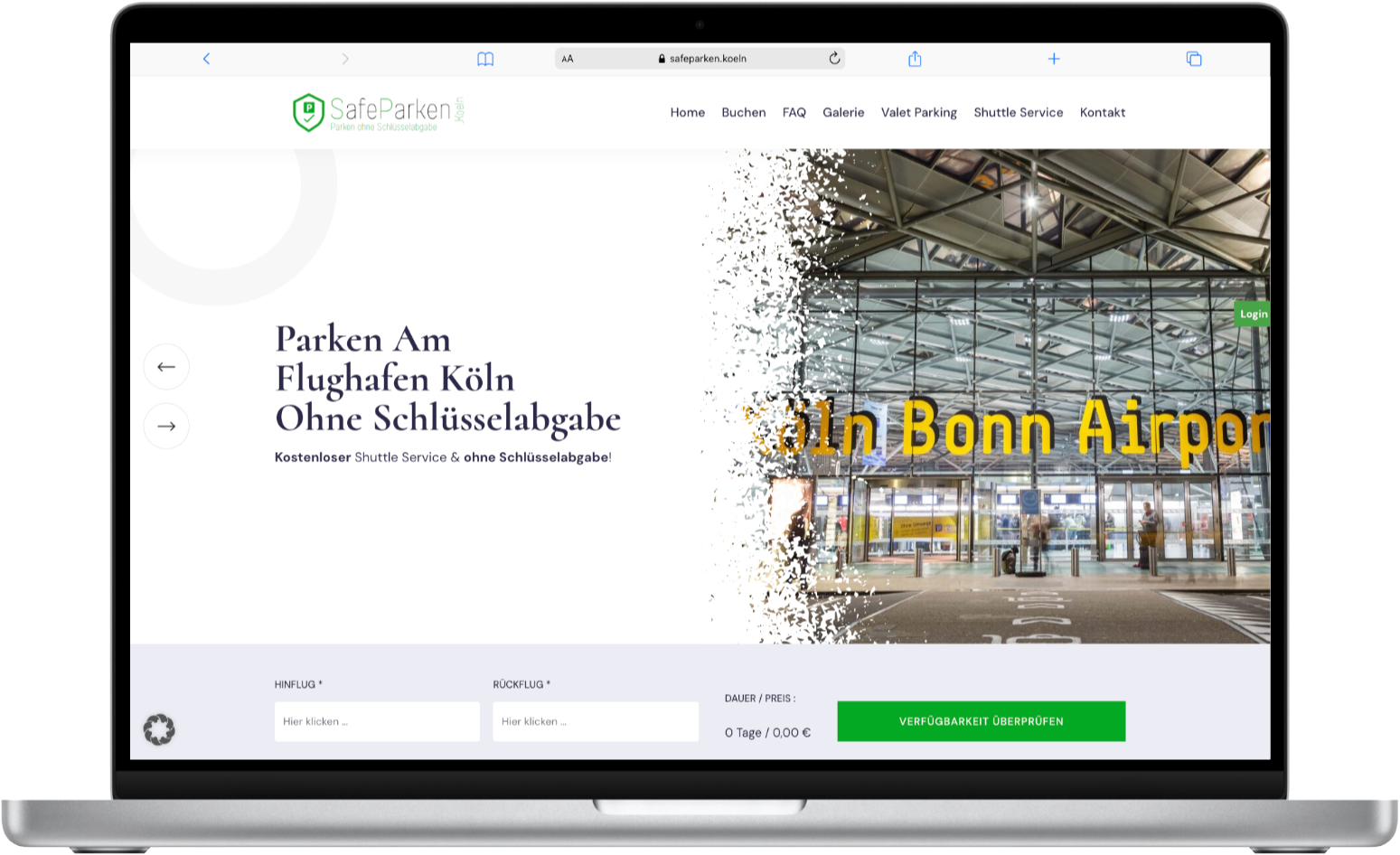 Safe Parken Köln bietet sicheres und günstiges Parken am Flughafen Köln/Bonn mit praktischem Shuttle-Service oder komfortablem Valet-Parking. Ihr Fahrzeug steht auf überwachten, umzäunten Parkflächen und Sie werden bequem zum Terminal gebracht bzw. geben Ihr Auto direkt dort ab und wieder in Empfang – ideal für stressfreies Reisen.